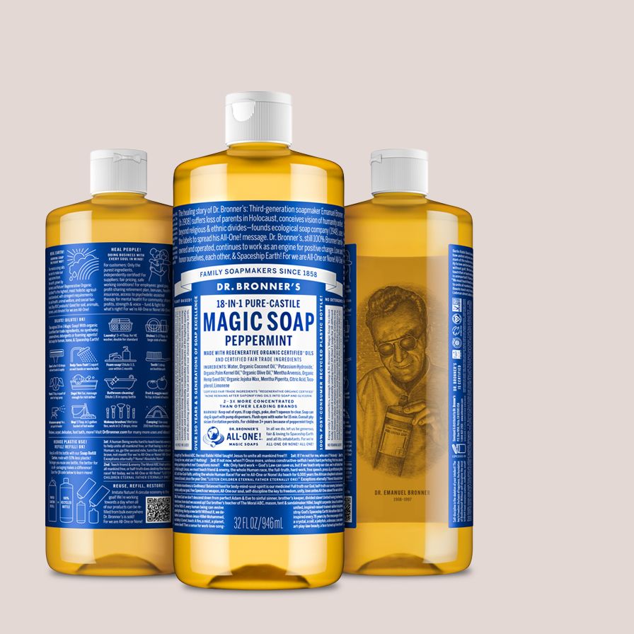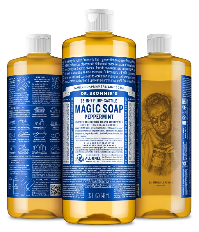 Finally, after years of the company referring to the product in print as “Dr. Bronner’s ‘Magic Soap’” we convinced them to make “Magic Soap” the name of the product, creating a clear brand difference between the generic castile soaps with which it now had to share shelf space.