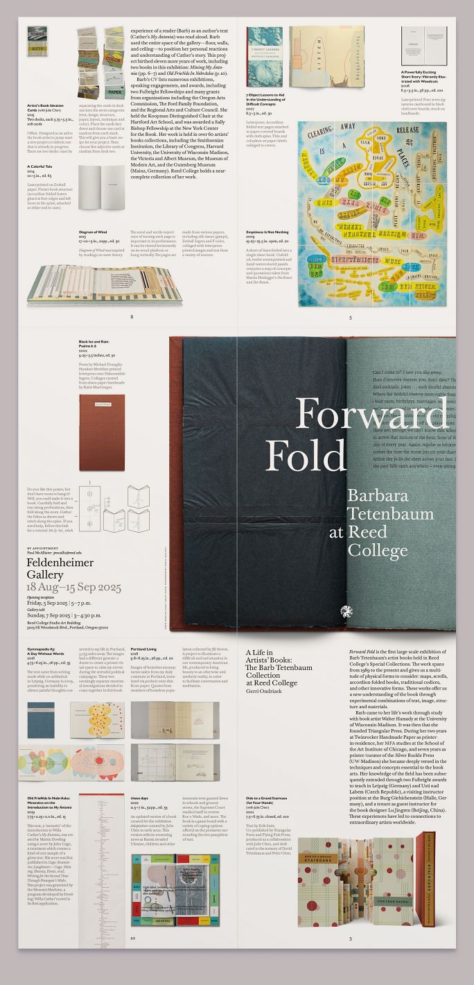For the book artist Barbara Tetenbaum’s 2025 retrospective exhibition at Reed College’s Feldenheimer Gallery, we created a poster that converts easily into a short exhibition catalogue.