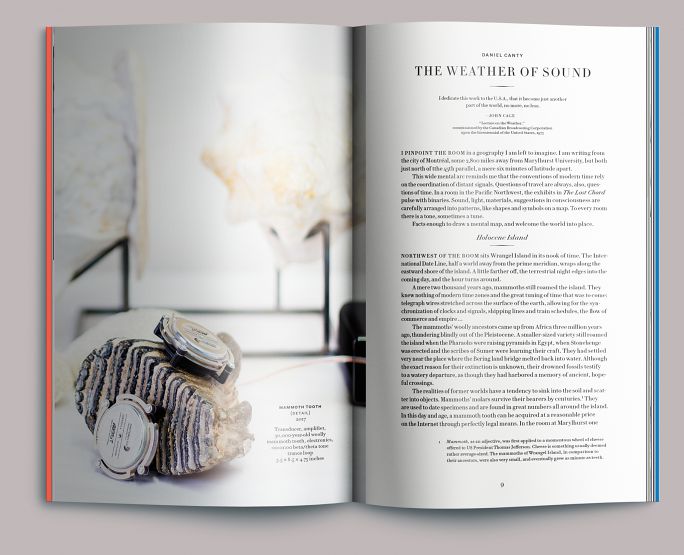 The book’s proportion and page program were structured around an image block that would partially bleed onto its facing page. To make room for this, the classically proportioned text area (constructed by Van de Graaf’s canon) is weighted away from the gutter. All objects—centerpoints for captions, page numbers, indents, etc.—are placed along the intervals of the mystic chord.
