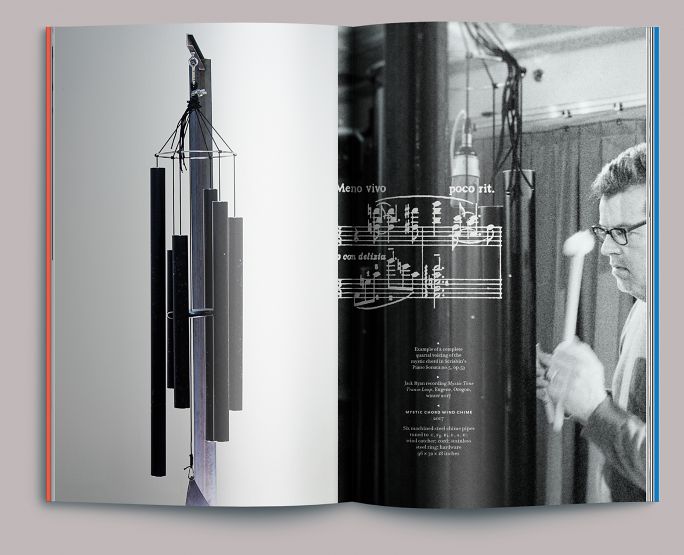 A catalog documenting Jack Ryan’s 2017 solo show, which was curated by Blake Shell for the Art Gym. The show’s title—and the book’s—refers to the mystic, or Prometheus, chord, a six-note synthetic chord ostensibly invented by Alexander Scriabin: the exhibition contained a huge wind chime Ryan fabricated and tuned to its notes. More generally, Ryan’s work examines nonintuitive sources of sound, especially the harmonics caused by overlapping frequencies, both in and of themselves and as broader metaphors for human interaction.
