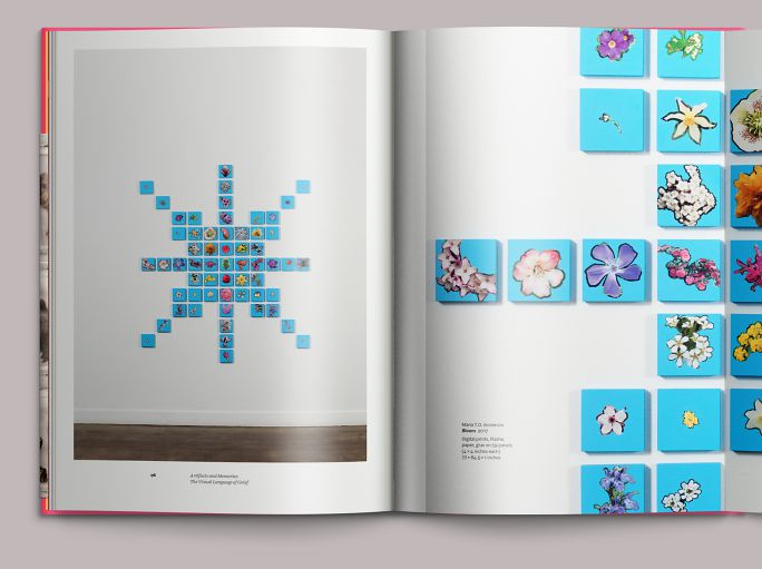 We also used gatefolds to show meaningful detail in the context of a particular work. This is Inocencio’s Bloom (2017).