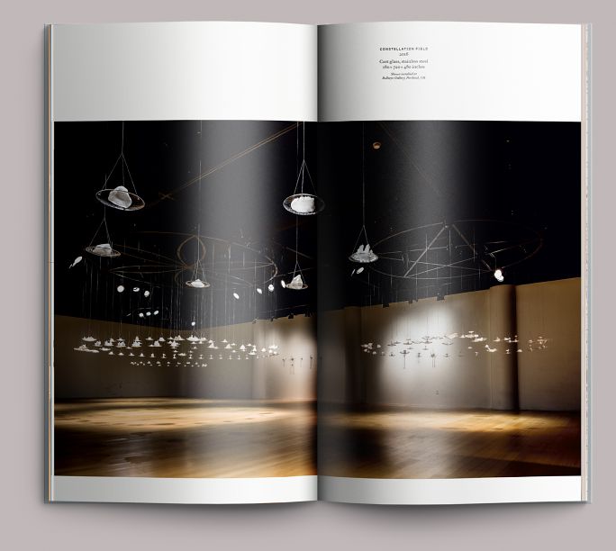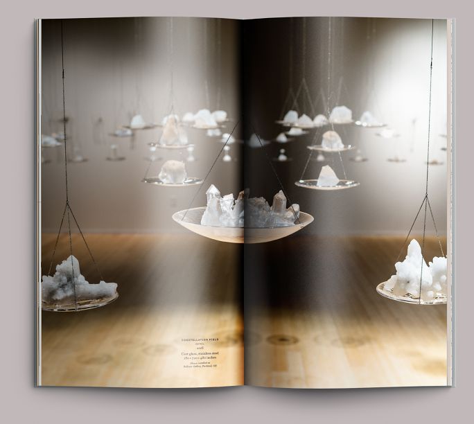 Derek Birdsall called white space “the lungs of the layout”; we once had a corporate client refer to it as “non-value-added space,” which we’re noting here just for posterity. This spread and the following give a good example of how important white space can be for pacing. Here, the white above and below frames the image, but also compresses it: the white both establishes a base for the values in the image (the shadows are richer for the contrast) and keeps the eye looking at the installation as a whole.
